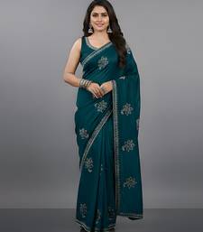 Blue embroidered viscose saree