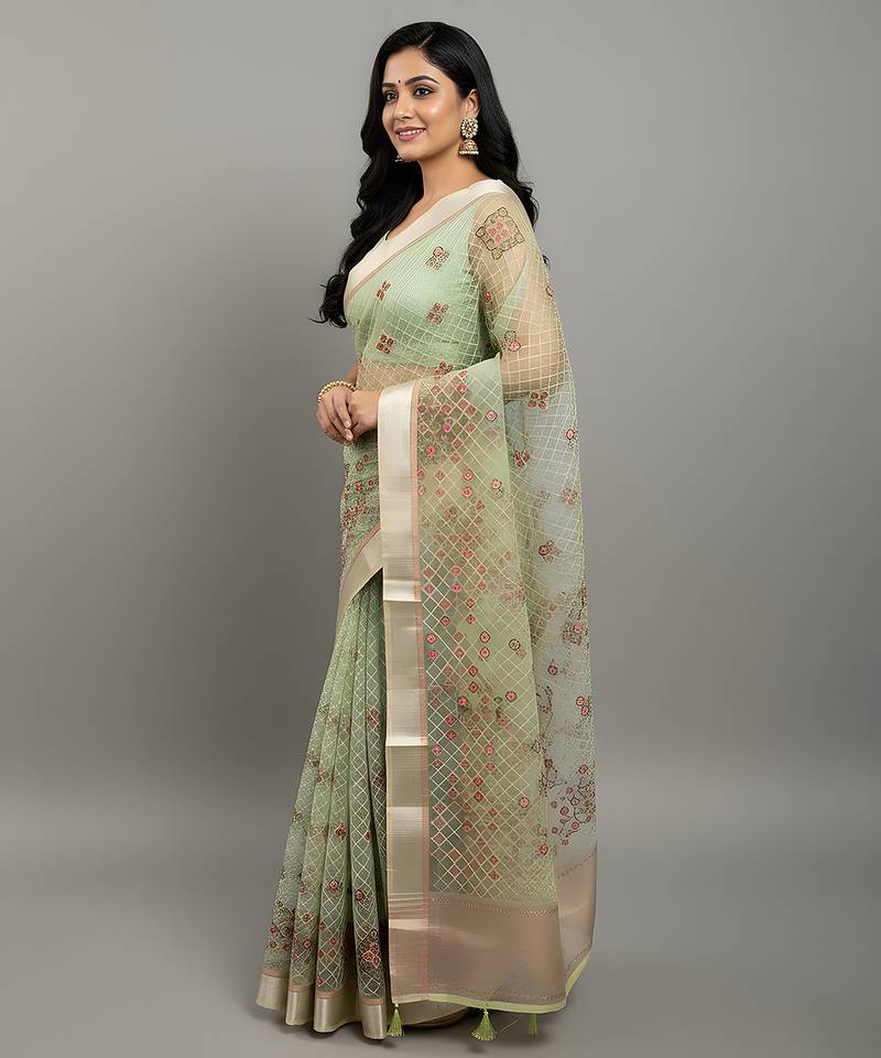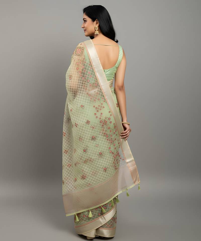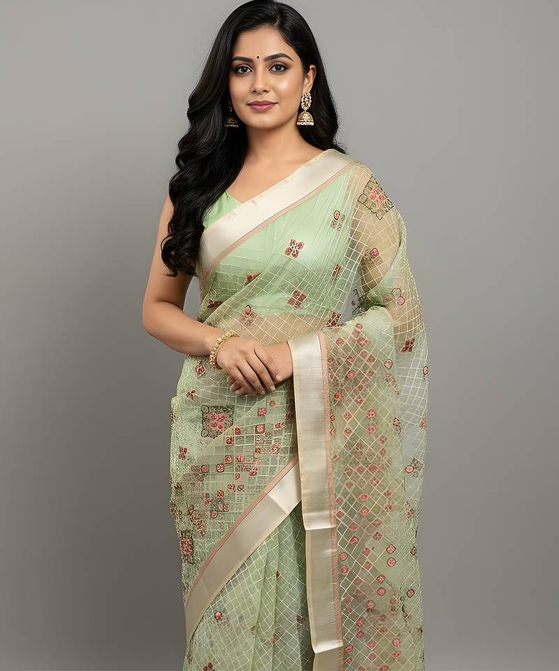 | Product Description | Green Embroidered Organza Saree Featuring A Sheer, Lightweight Texture And Graceful Drape. Enhanced With Delicate Embroidery That Adds Elegance And Festive Charm. Perfect For Weddings, Celebrations, And Special Occasions, This Saree Brings A Fresh, Radiant Look With A Blend Of Traditional Beauty And Modern Sophistication.