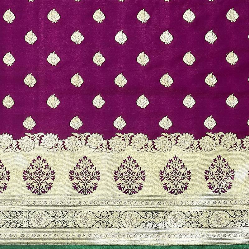 | Product Description | Humairah Presenting Magenta Booti Mughal Motif Banarasi Satin Silk With Skirt Kadiyal Paithani Green Border!कारीगरी: Woven With Bright Colour And Zari Yarn, A Workmanship With Balanced Harmony Of Contrasting Colour Synchronization, A Banarasi Silk Story.!Occassion Ideal For Functions Such As Weddings, Grand Festivities And Celebrations. Can Also Be Worn For Family Gatherings And Social Events. |