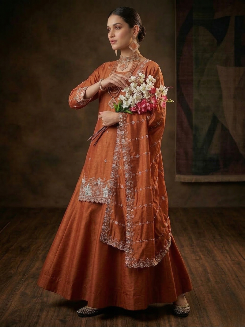 | • | Dupatta | : | Color- Bronze / Fabric- Silk |