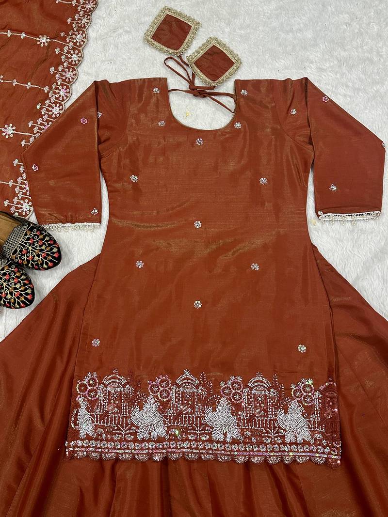 Bronze simmer silk embroidery work lehenga choli