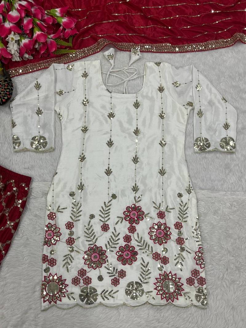 | Product Name | Heavy Work White Top With Red Sharara Suit With Dupatta | |