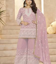 Pink georgette embroidered sequins festive wear pakistani palazzo suit stitched