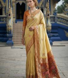 Beige ready to wear jacquard silk  saree and ready to wear jacquard silk  blouse with cup