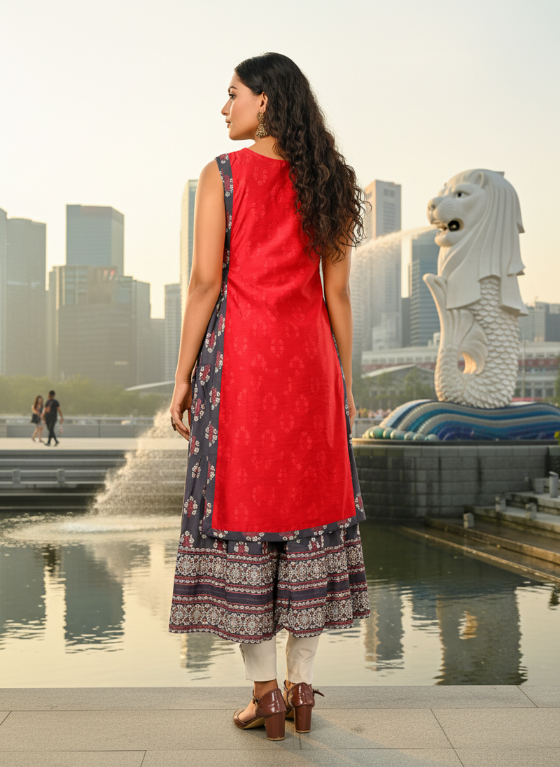 | Product Name | Blue Cotton Inner With Chanderi Layered Jacket Kurti Set | |