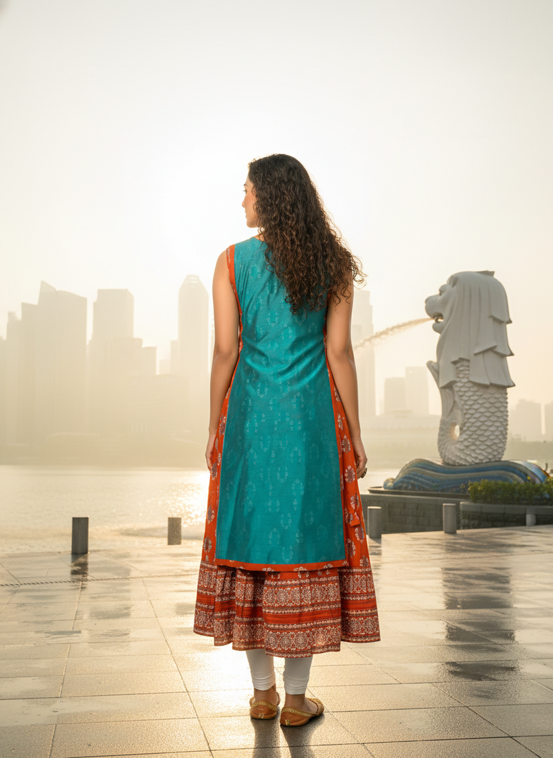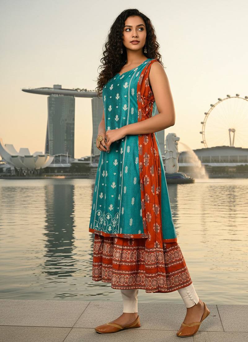 | Product Name | Cream Cotton Inner With Chanderi Layered Jacket Kurti Set | |