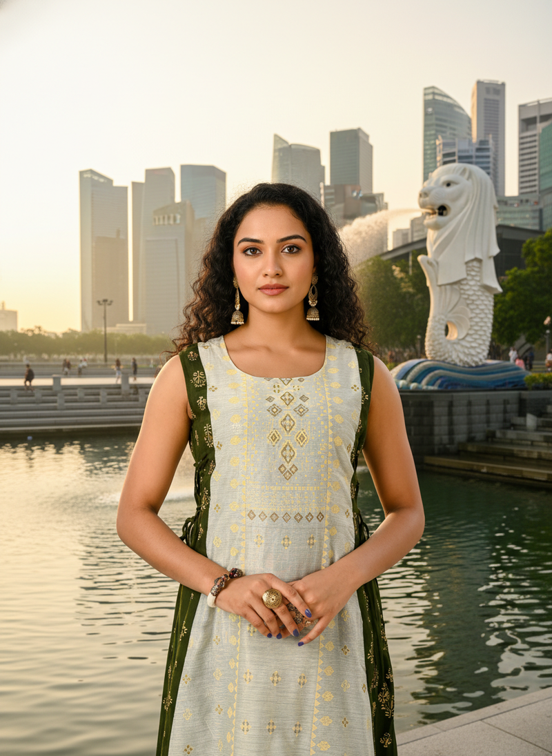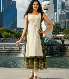 | Product Name | Derk Green Cotton Inner With Chanderi Layered Jacket Kurti Set | |