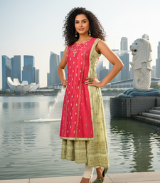 | Product Name | Light Coffee Cotton Inner With Chanderi Layered Jacket Kurti Set | |