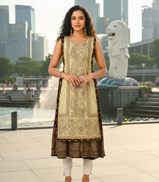 | Product Name | Rani Pink Cotton Inner With Chanderi Layered Jacket Kurti Set | |