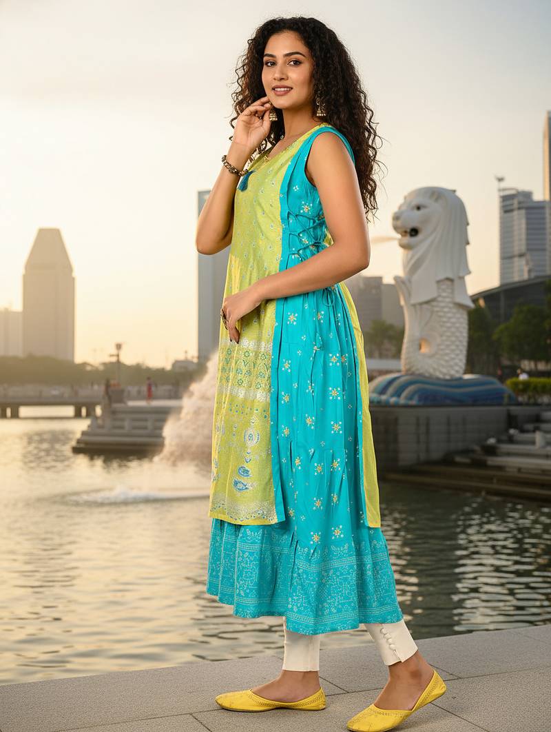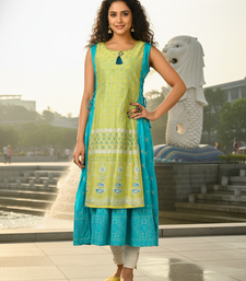 | Product Name | Rani Pink Cotton Inner With Chanderi Layered Jacket Kurti Set | |