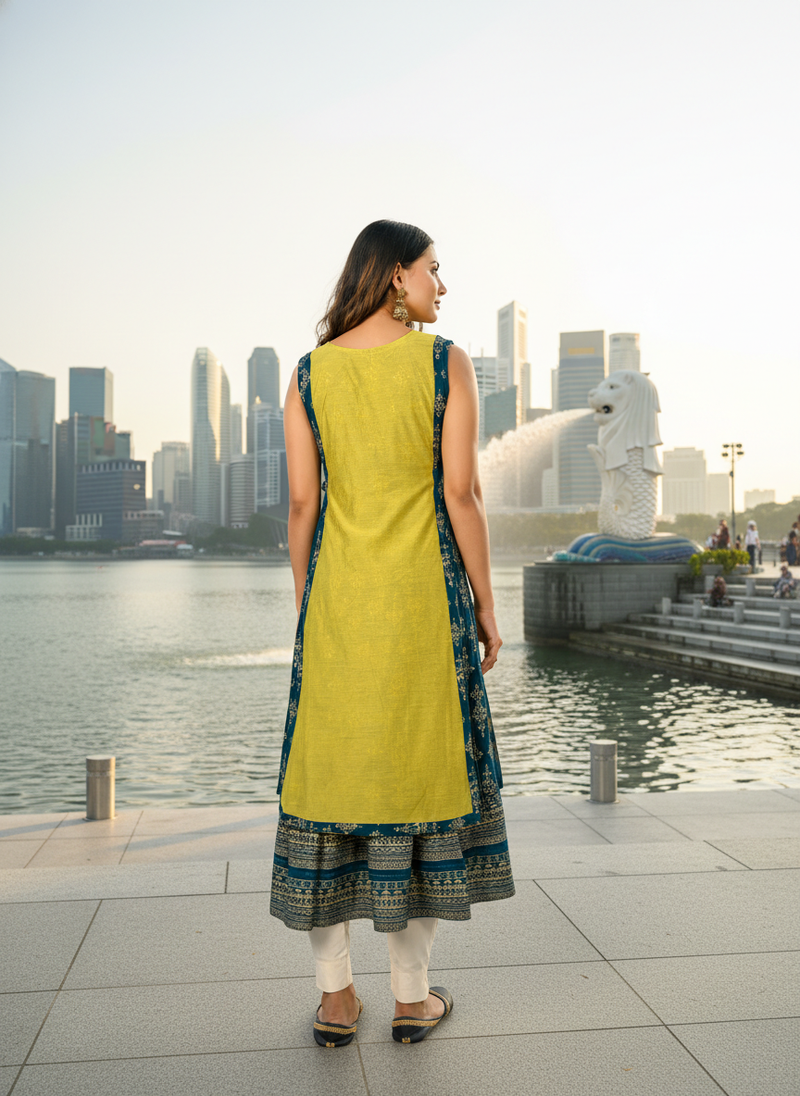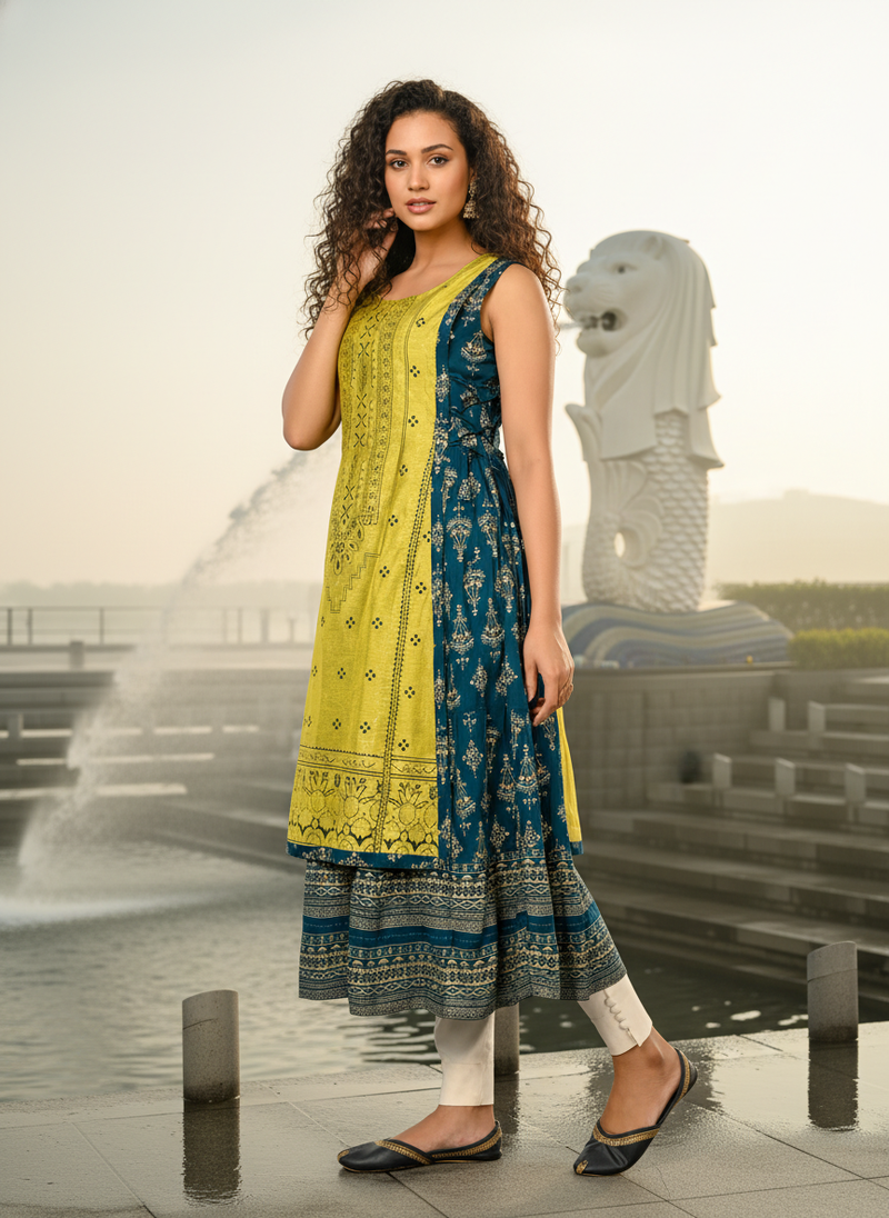 | Product Name | Red Cotton Inner With Chanderi Layered Jacket Kurti Set | |