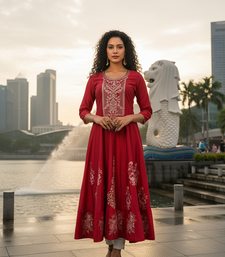 | Product Name | Red Cotton With Hand Print Light Embroidered Kurti | |