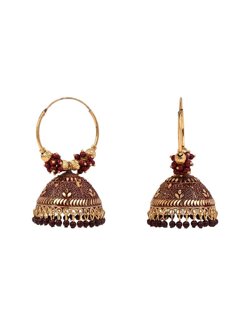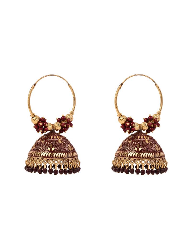 Gold plated traditional handcrafted beaded jhumka hoop earrings for women