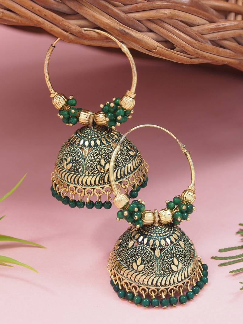 Product Name | Gold Plated Handcrafted Floral Beaded Jhumka Hoop Earrings For Women | |