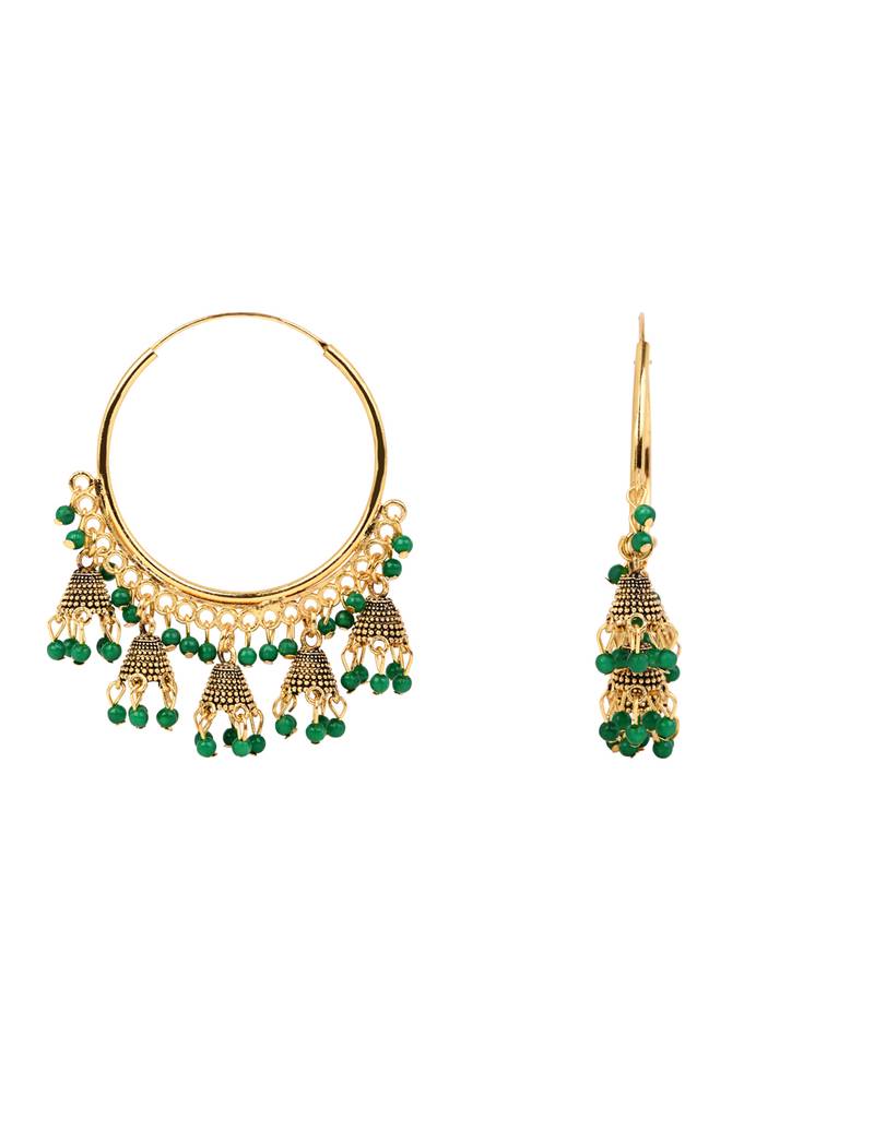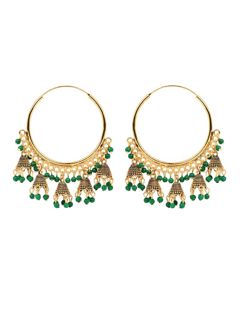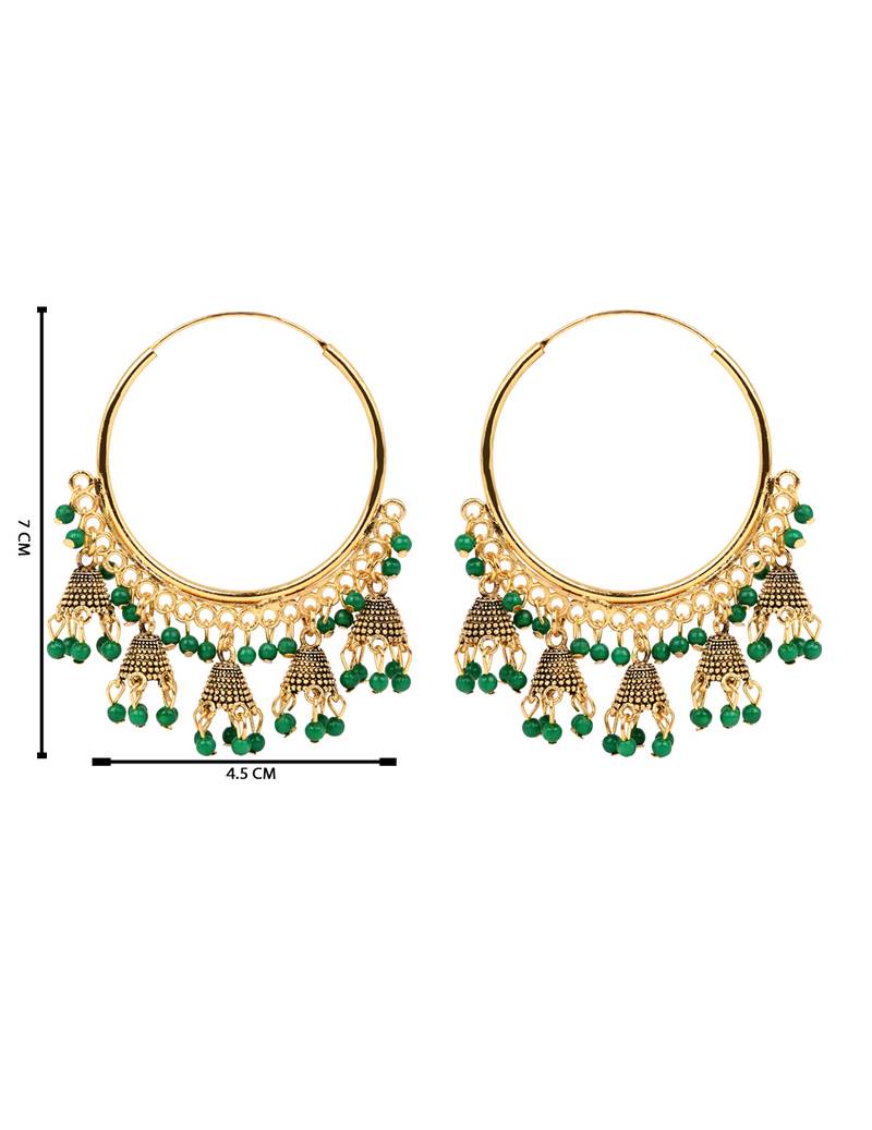 Product Name | Gold Plated Hoop Earrings With Multi Jhumka Dangles For Women (Green) | |