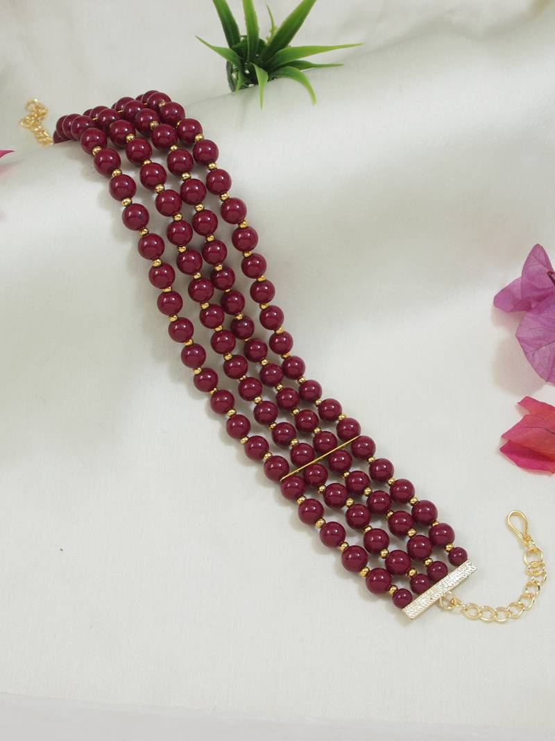 Product Name | Gold Plated Maroon Pearl Beaded Stylish Moti Choker Necklace For Women | |