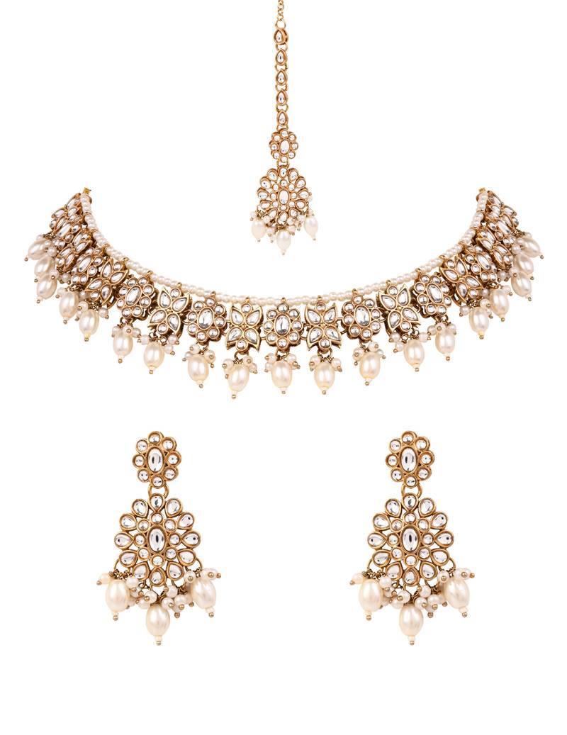 Product Name | Gold Plated Traditional Kundan Pearl Choker Necklace With Earrings & Maang Tikka For Women (K7308w) | |
