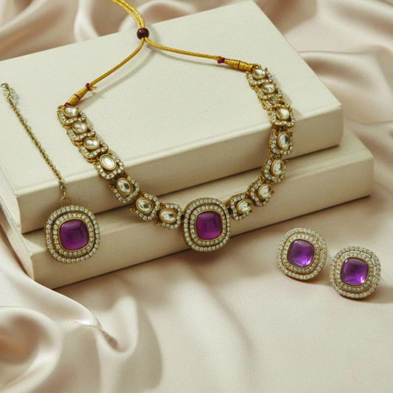 | Product Name | Gold Plated Traditional Kundan Style Necklace Set With Earrings & Maangtikka | |