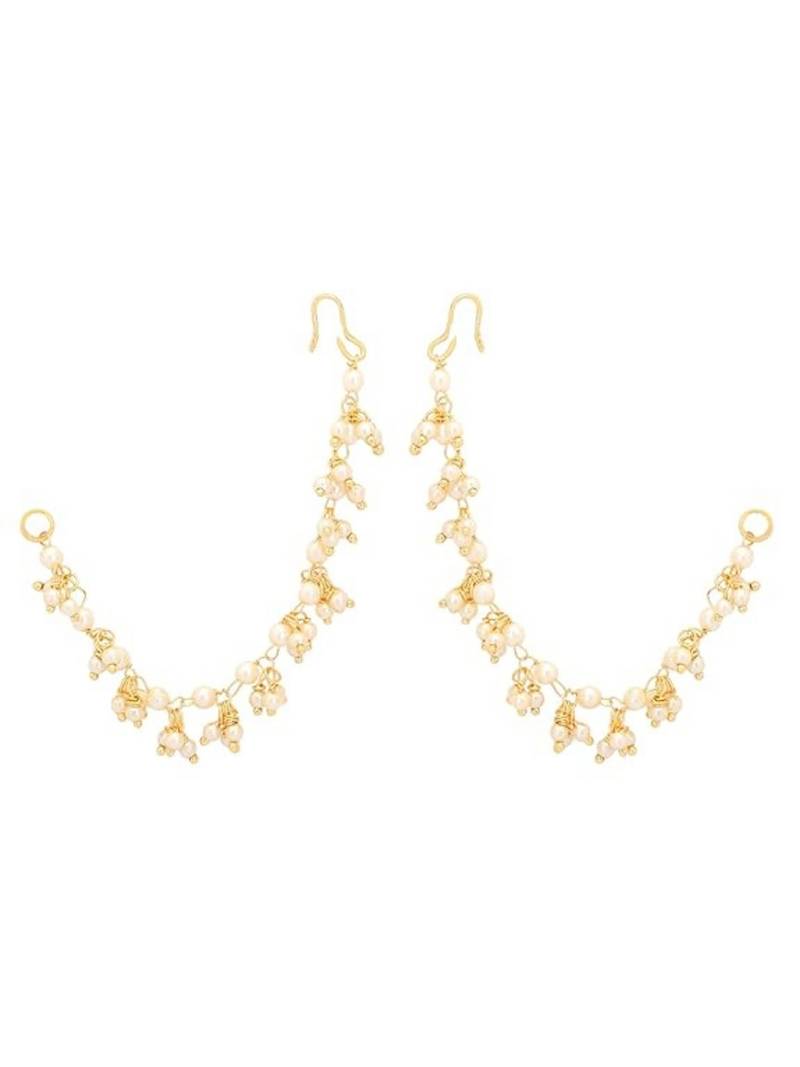 Gold plated traditional pearl hair chain::Ear chain accessories with hook for women