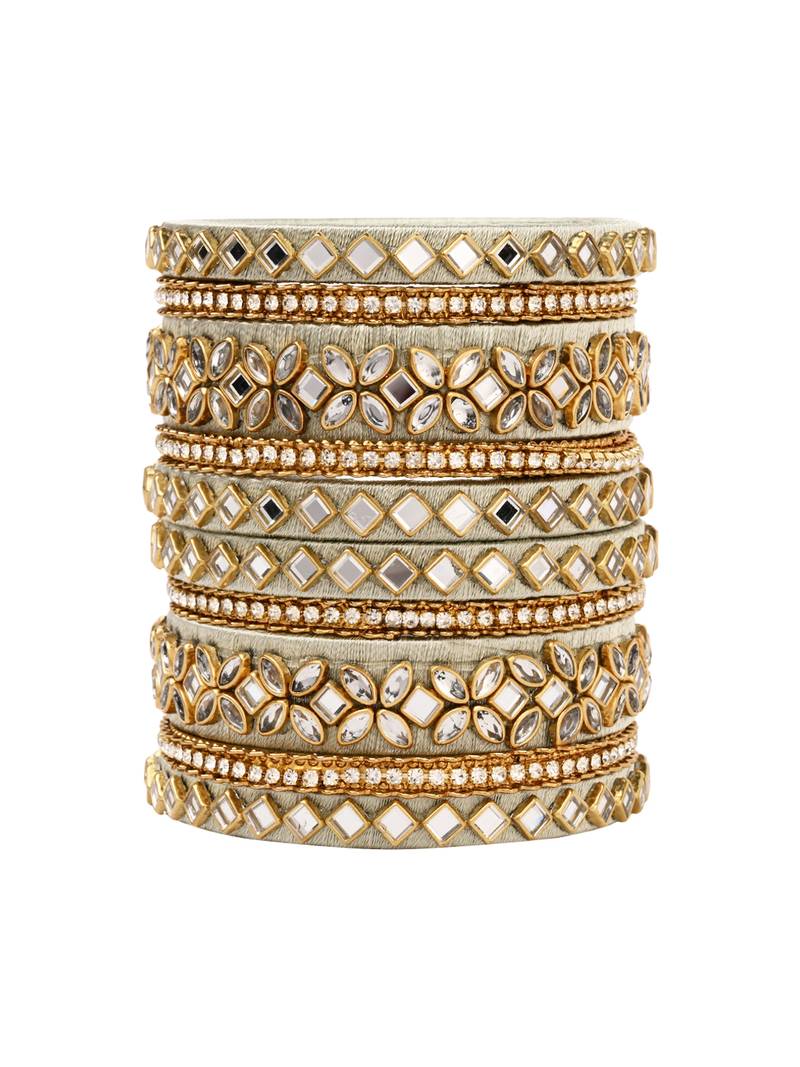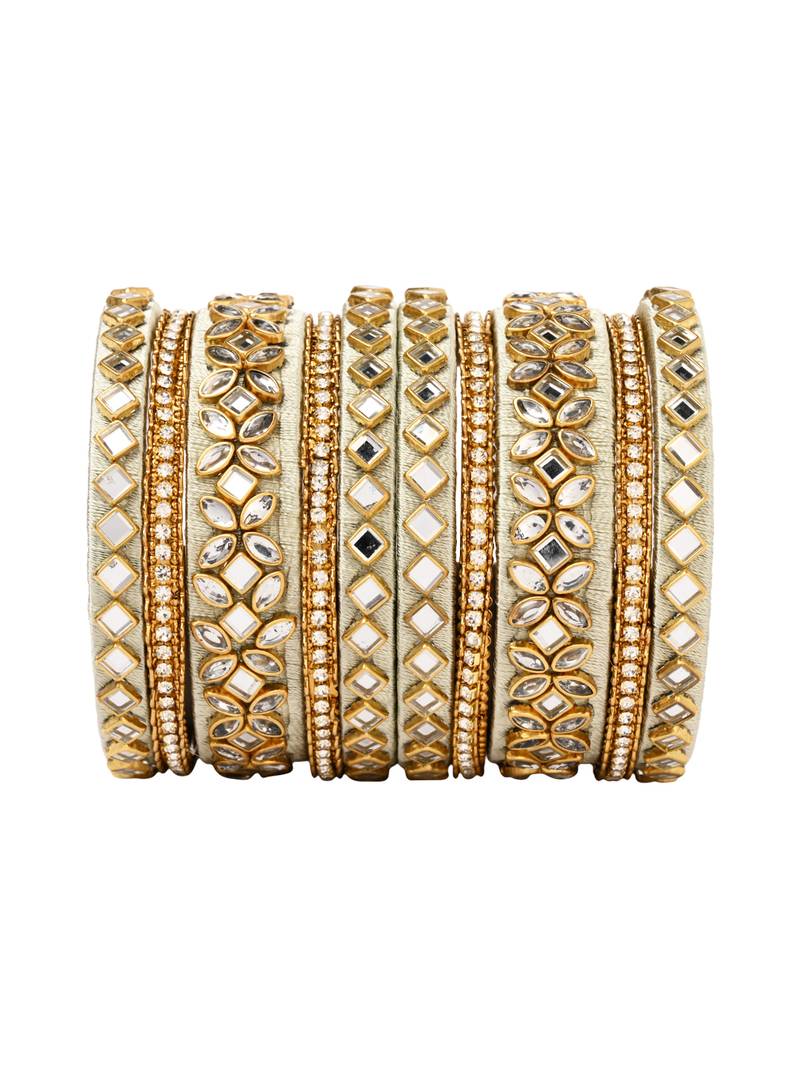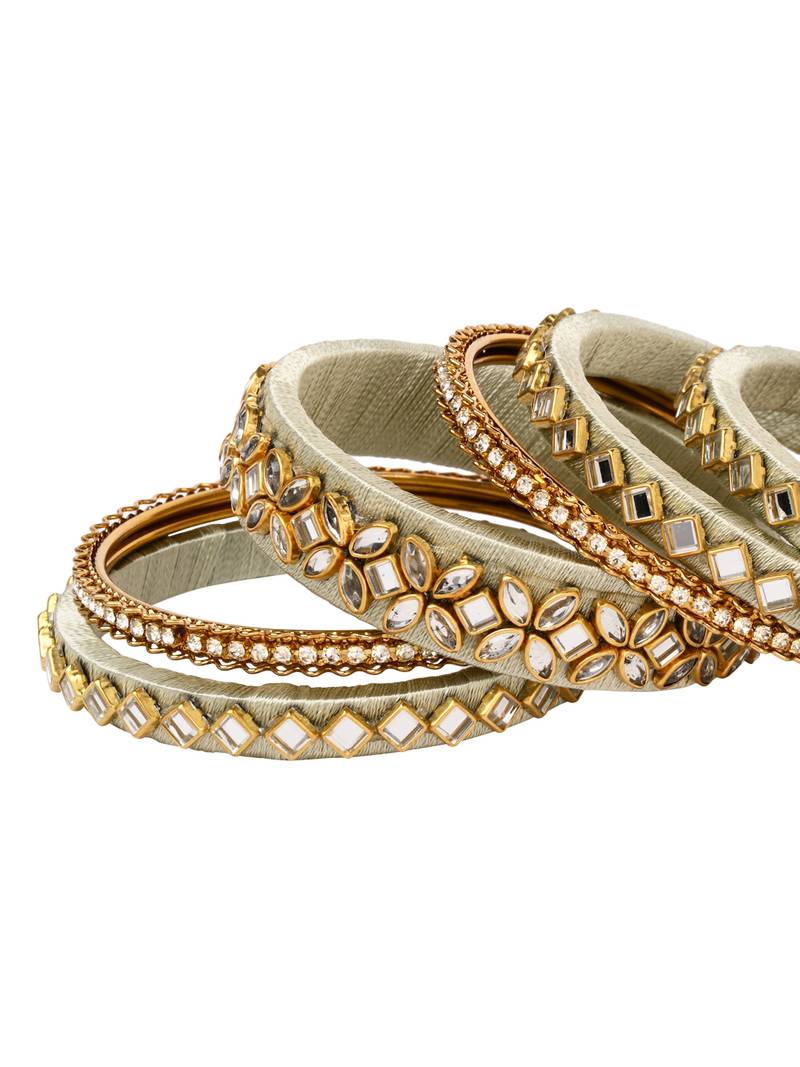 Gold Plated Traditional Silk Thread Embellishments Bangles Chuda Bangle Set For Bridal/Women (Mint)