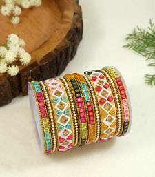 Gold plated traditional silk thread handcrafted vibrant multicolor embellished bangles chuda bangle set for bridal
