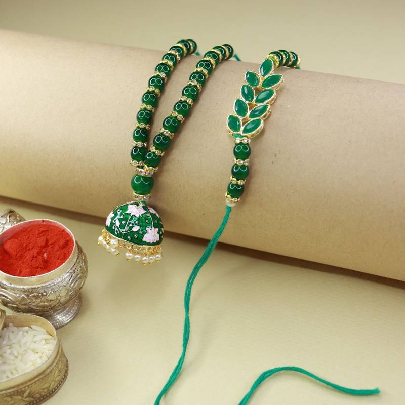 Designer bhaiya bhabhi hanging lumba rakhi combo set for rakshabhandan