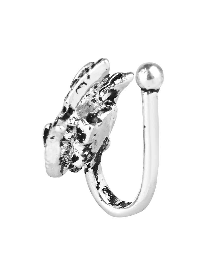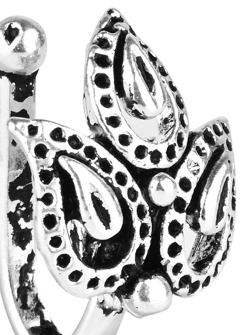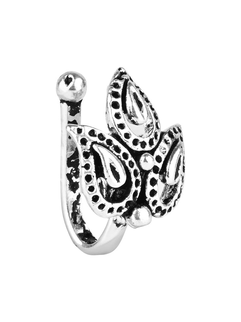 Navratri Ethnic Silver Plated Leaf Design Clip On Non Piercing Pressing Type Nose Pin, Nose Ring Stud For Women