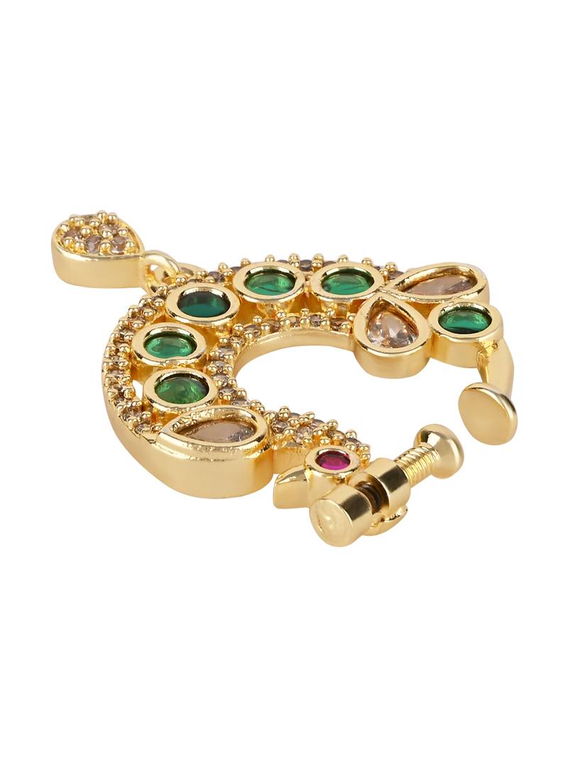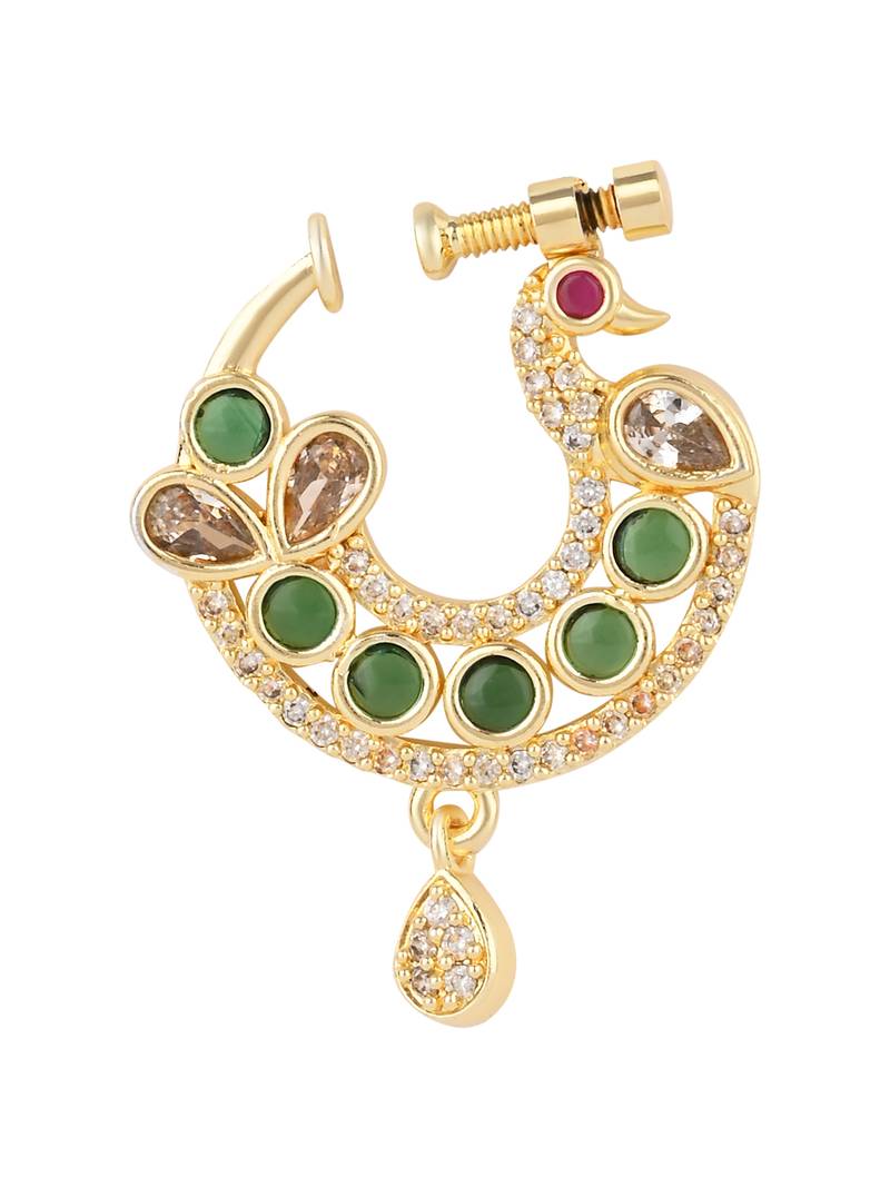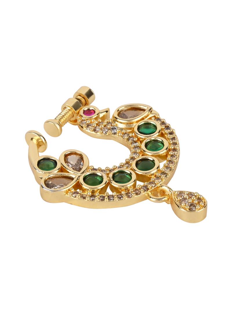 Peacock Design Cz American Diamond Non Piercing Screw Press Nose Pin/Nath Clip On For Women