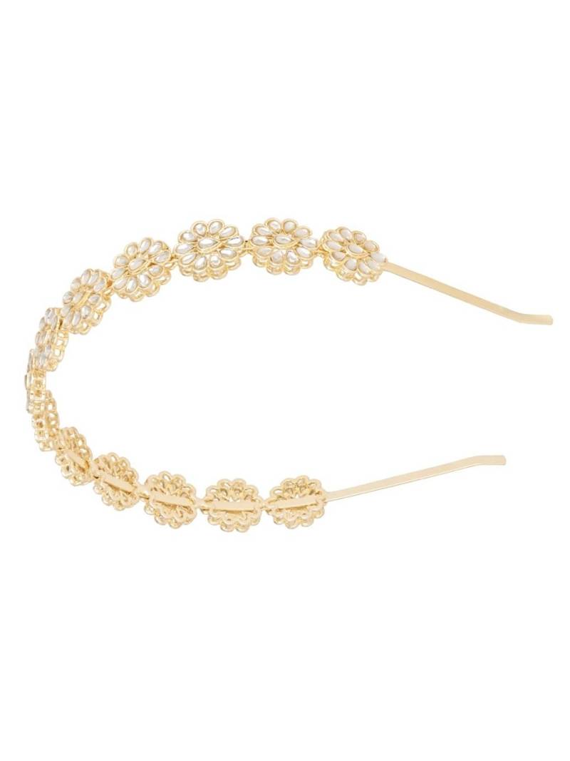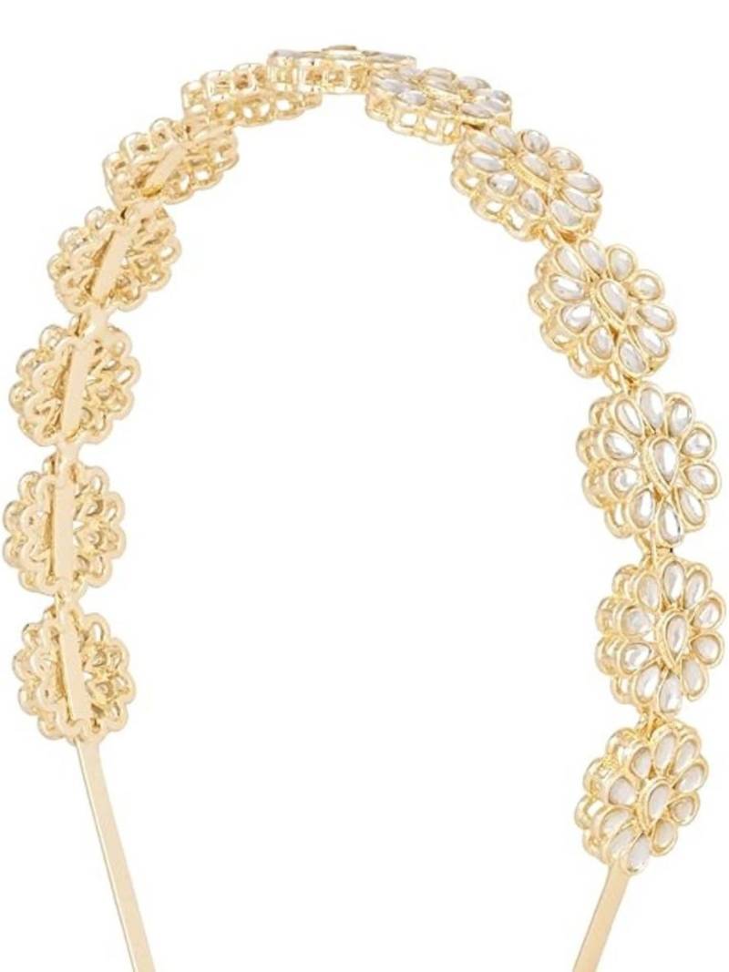 Rajasthani Gold Plated Floral Design Kundan & Pearl Sheeshphool/Mathapatti/Hairband For Women