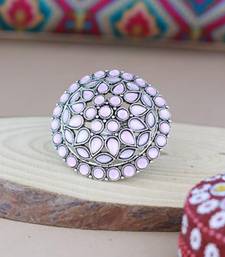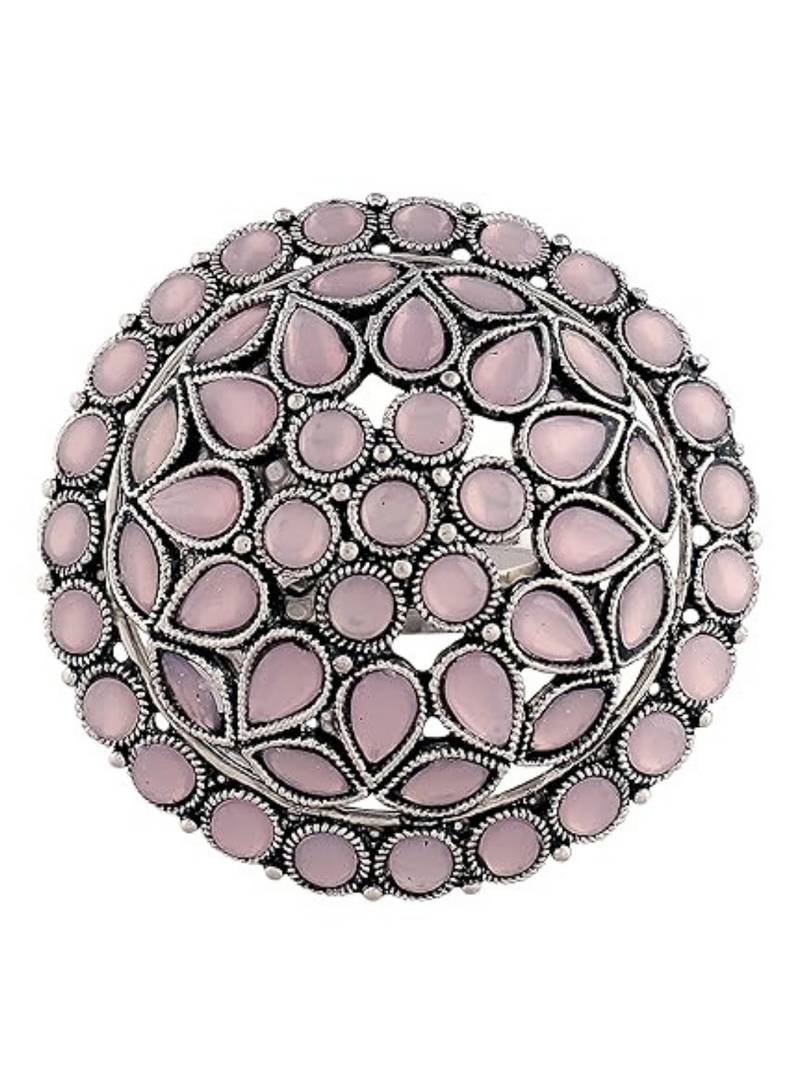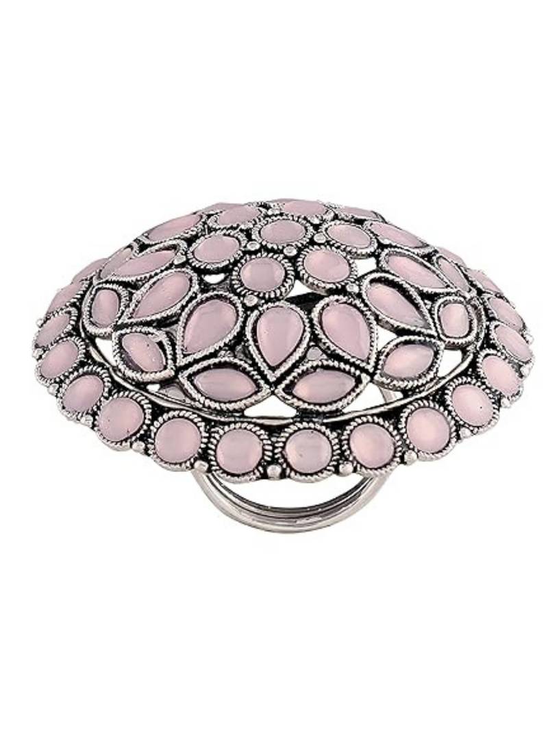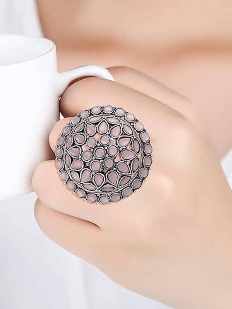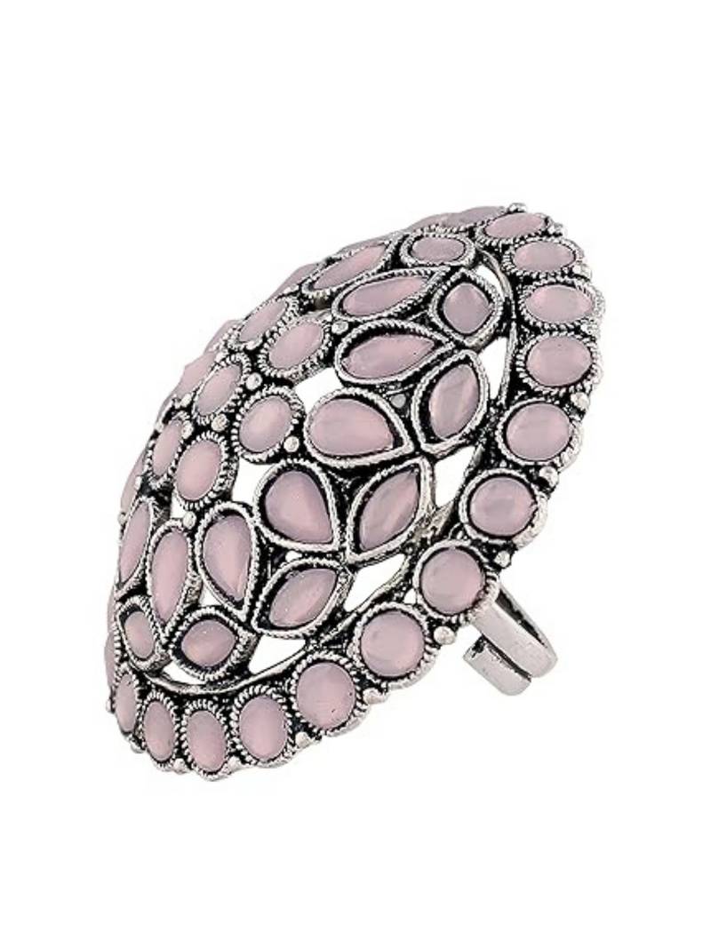 Silver Oxidized Kundan Work Designer Adjustable Finger Ring For Women