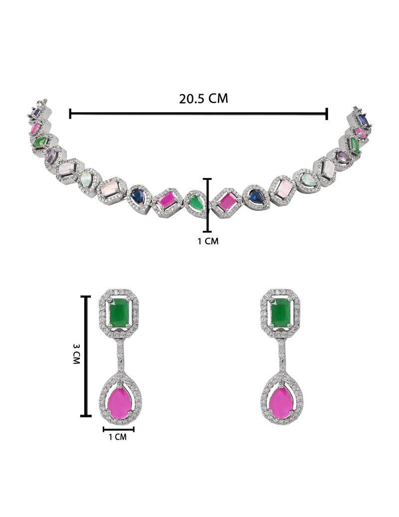 Product Name | Silver Plated Cubic Zirconia American Diamond Necklace & Earrings Jewellery Set For Women | |