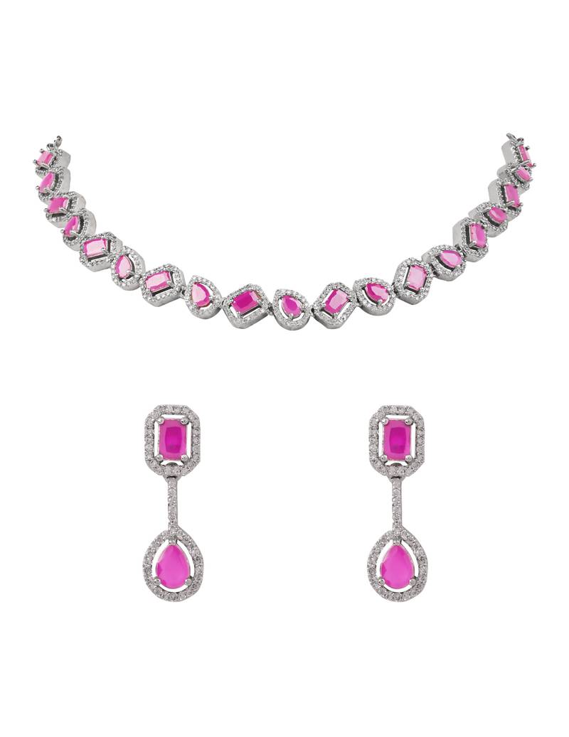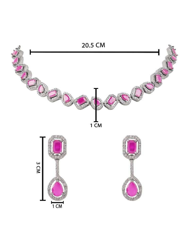 Product Name | Silver Plated Cubic Zirconia American Diamond Necklace & Earrings Jewellery Set For Women | |