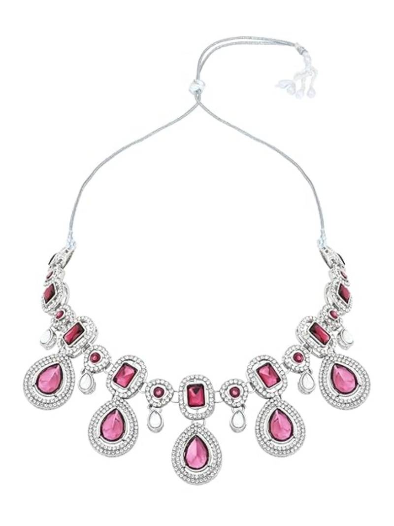 Silver Traditional Kundan & Stone Choker Necklace Jewellery With Earrings & Maang Tikka Set For Women