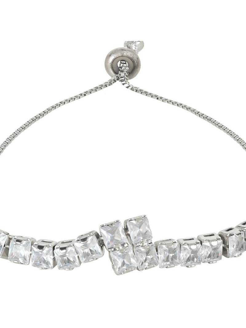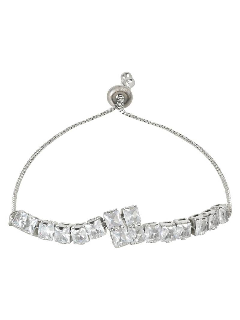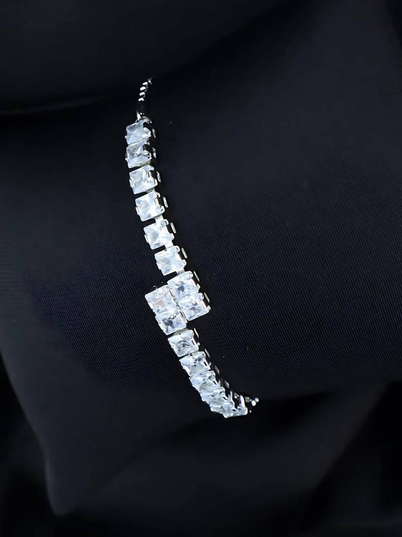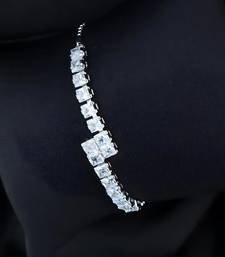 Stylish silver plated cubic zirconia american diamond adjustable bracelet for women