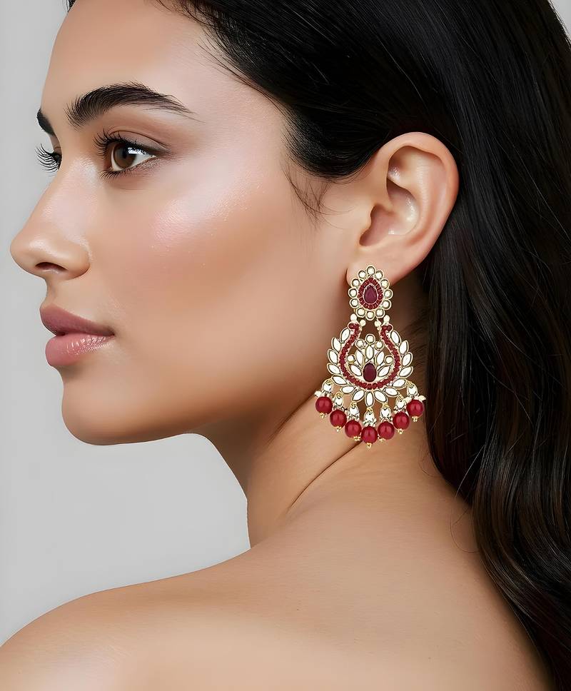Traditional Design Handcrafted Kundan & Pearl Earrings For Women