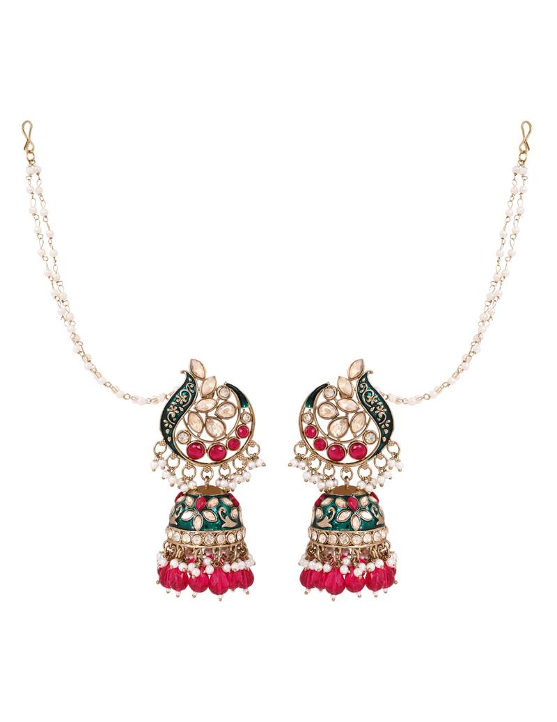Traditional meenakari jhumka with ear chain for women (e3382)