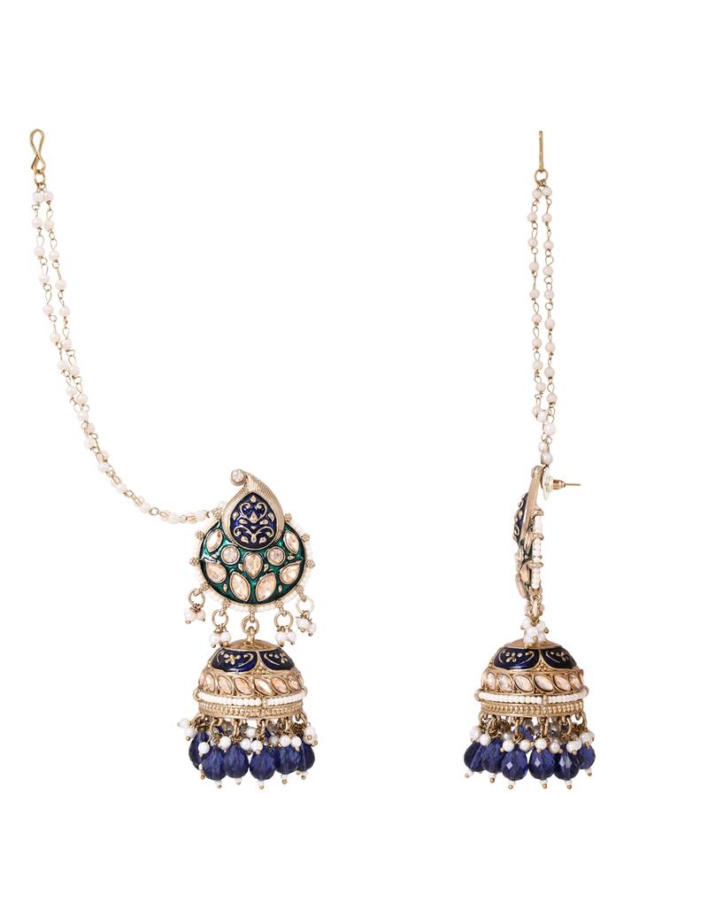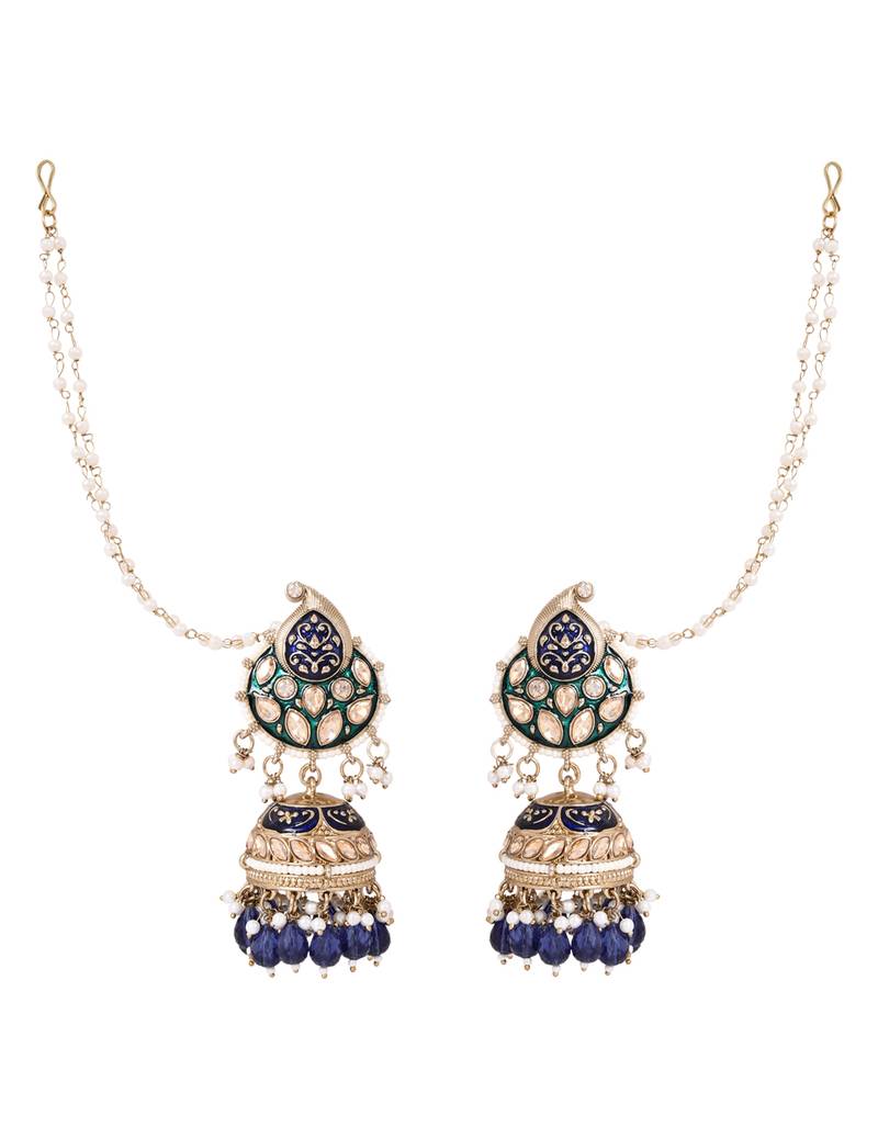 Traditional meenakari kundan jhumka with ear chain for women (e3381)