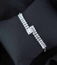 Valentines special stylish silver plated cubic zirconia american diamond adjustable bracelet for women & girls