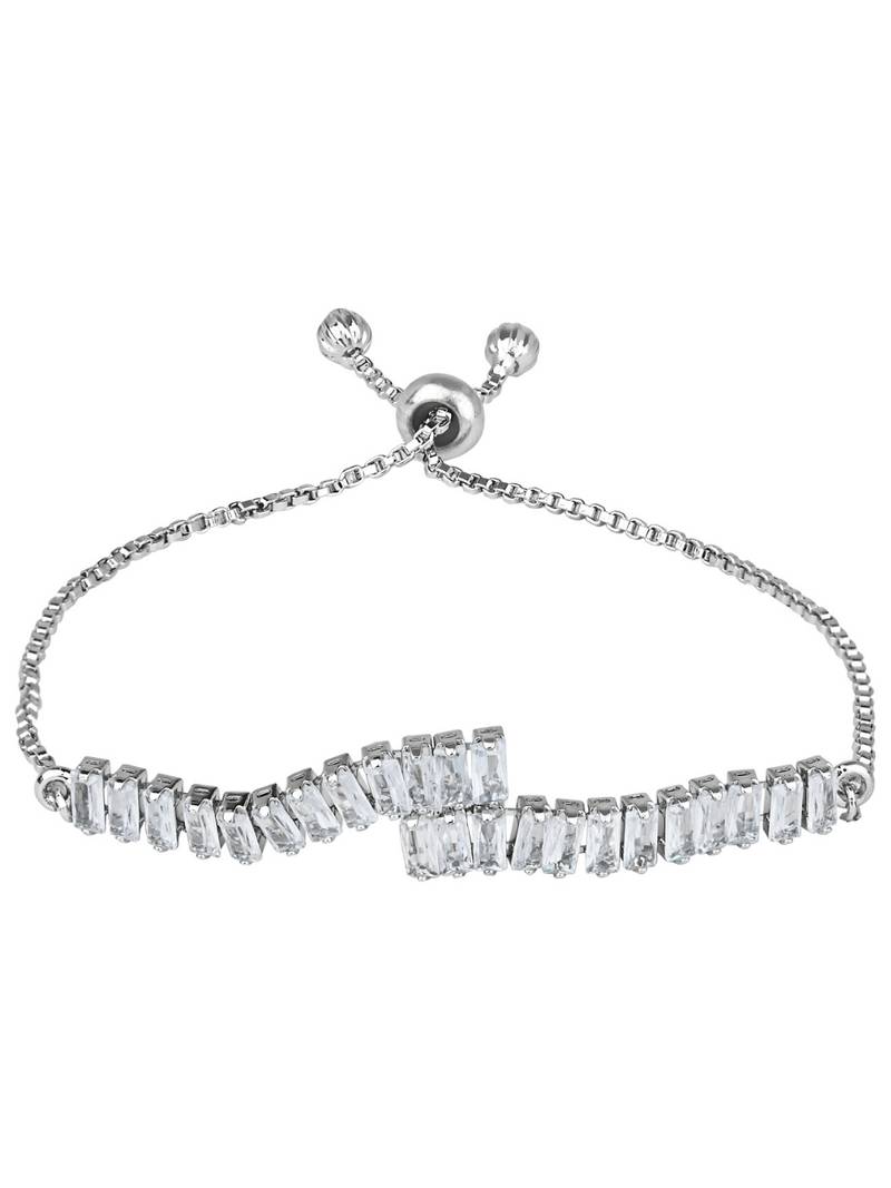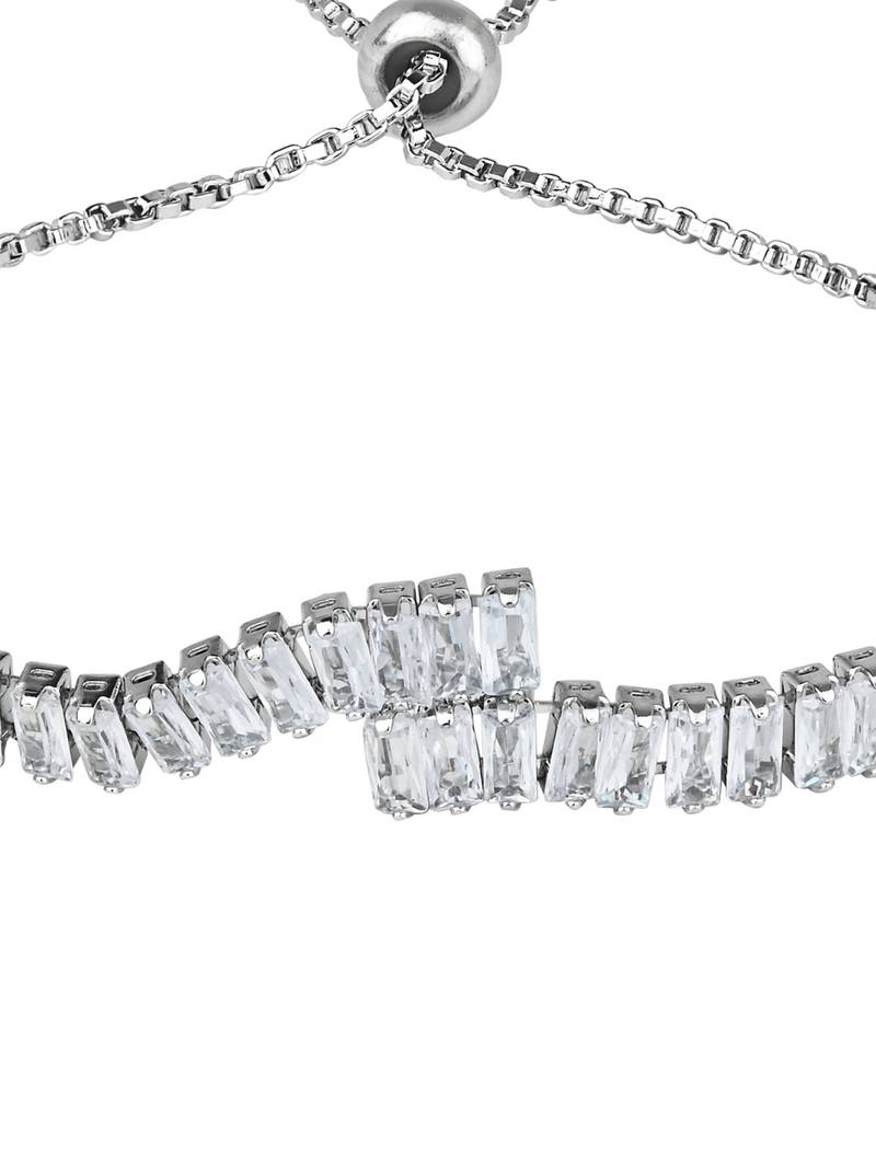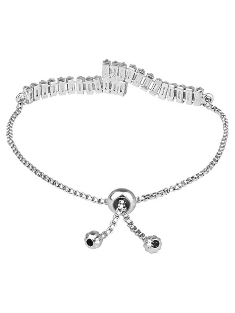 Valentines Special Stylish Silver Plated Cubic Zirconia American Diamond Adjustable Bracelet For Women & Girls