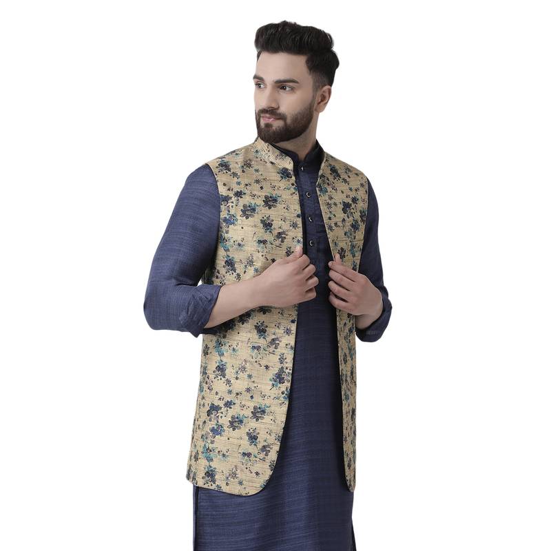 | Product Description | I Know Men Floral Printed Beige Khadi Nehru Jacket Is Ideal For Those Occasional Days When You Want To Stand Out From The Crowd. Made From Khadi, It Has An Unconventional Open Cut Front Without Buttons. It Has A Mandarin Collar, One Chest Pocket Accented With Straight Hemline And Curved Edge. Team It Up With I Know Men Solid Navy Blue Silk Straight Kurta And Navy Blue Silk Pant Set To Complete Your Ethnic Look. |