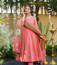 Pink cotton embroidered anarkali suit set