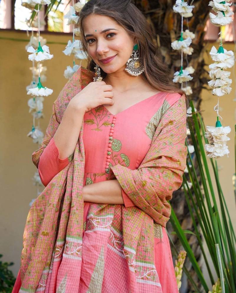 | Product Name | Pink Cotton Embroidered Anarkali Suit Set | |