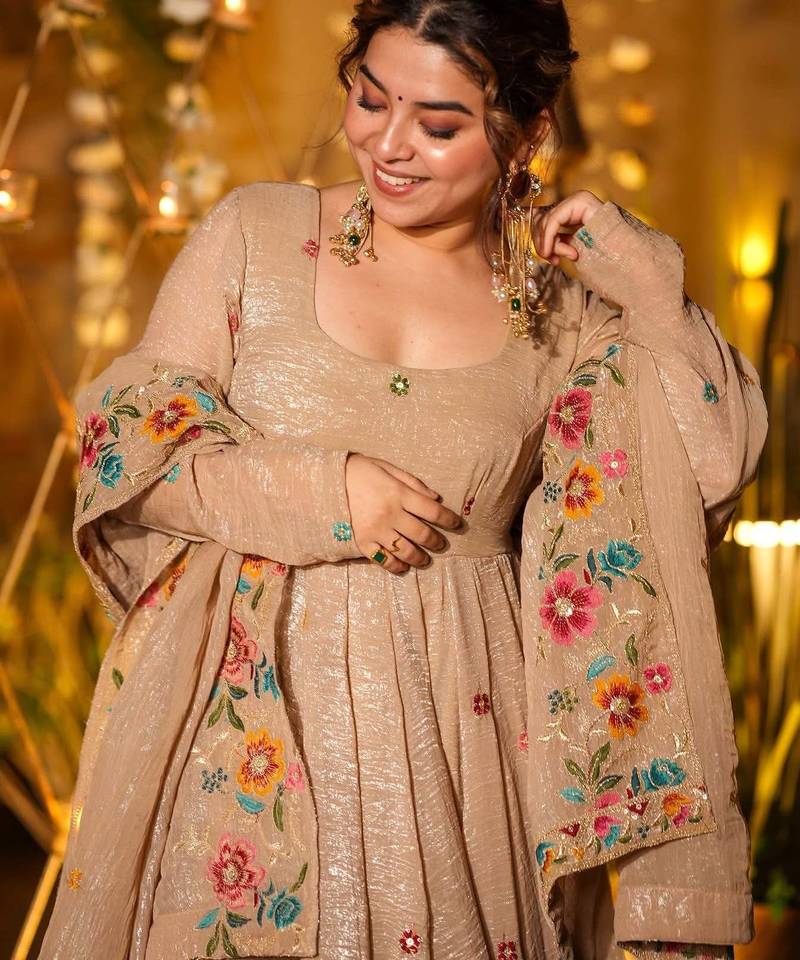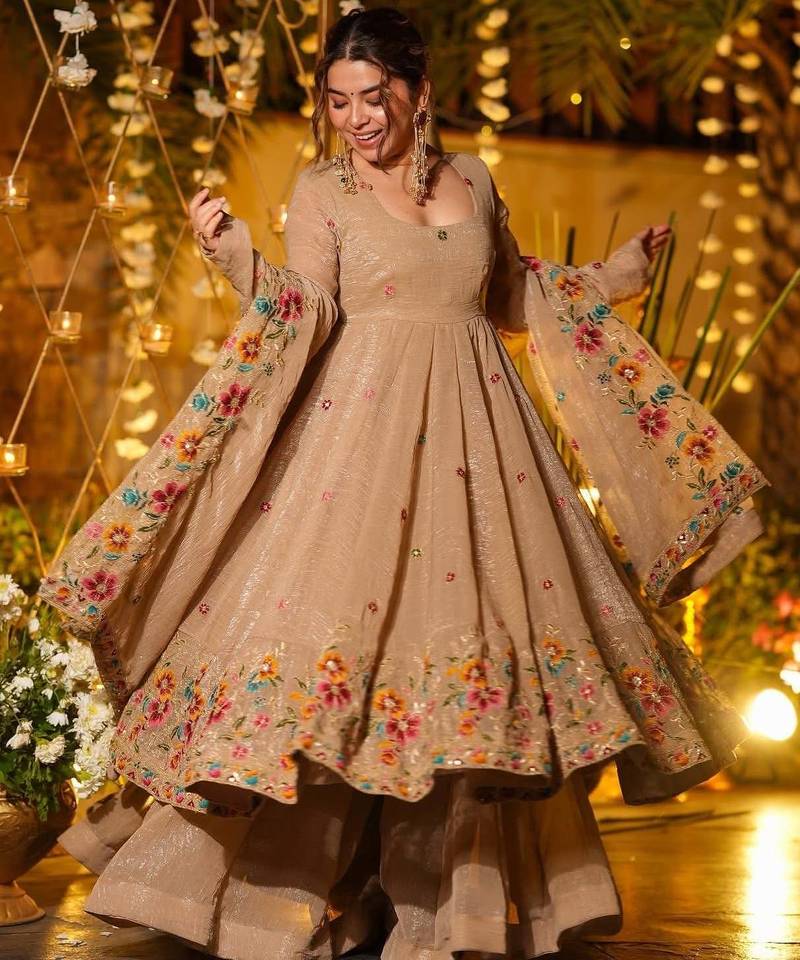Luminous silken anarkali suit set