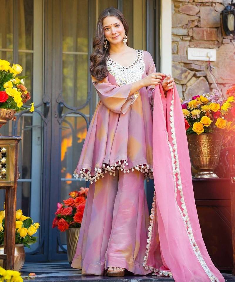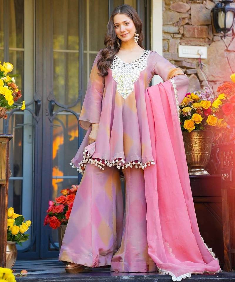 | • | Dupatta | : | Color- Pink / Fabric- Silk |