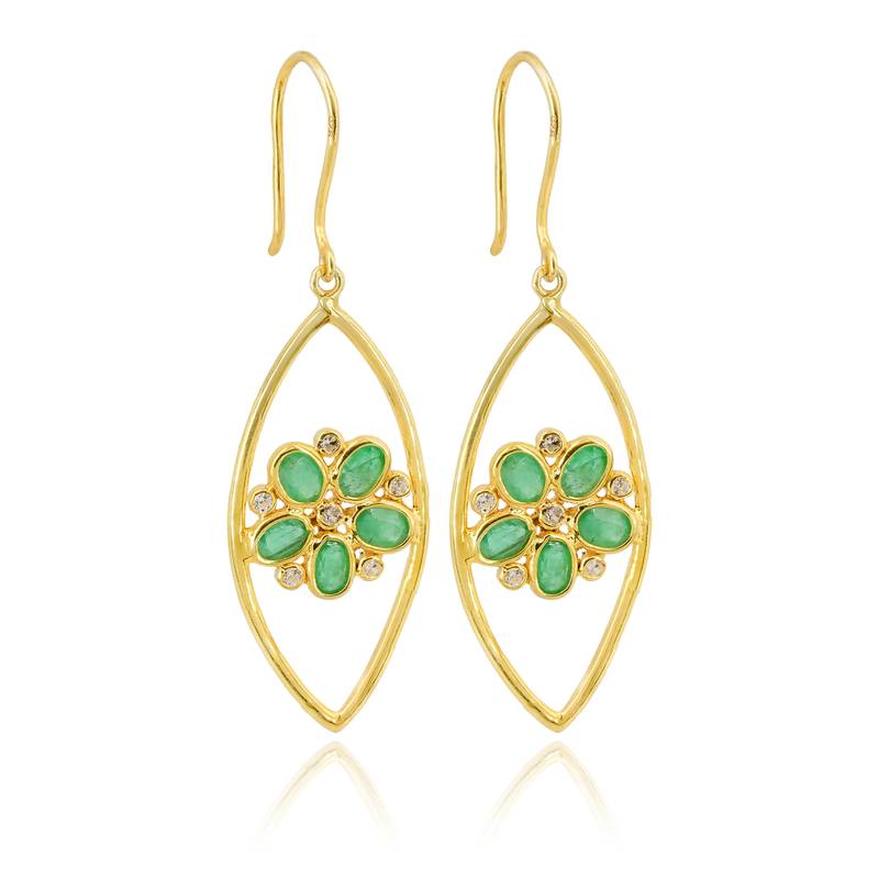 | Product Name | Marquise Drop Earrings With Emerald Flower & Cz Accents In 18k Gold Plated 925 Silver | |