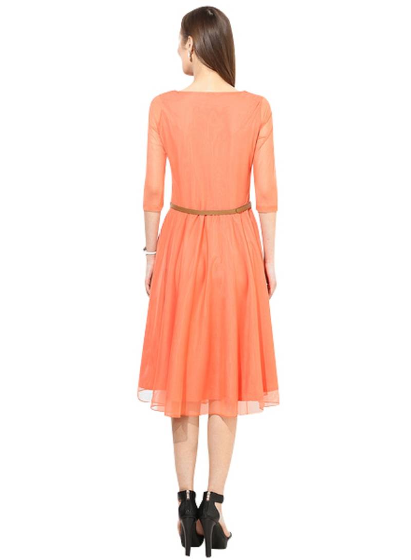 Orange plain net dress stitched