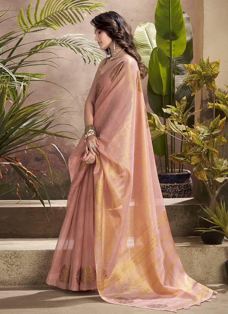 Baby pink kiri silk blend zari weaving party wear saree