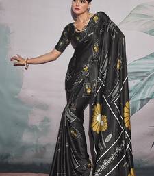 Black crape digital printed casual wear saree