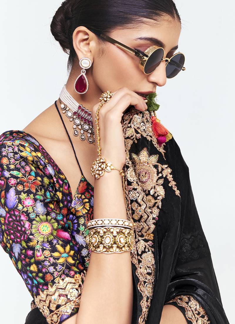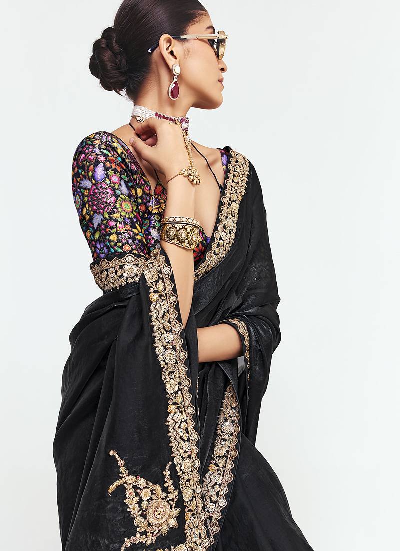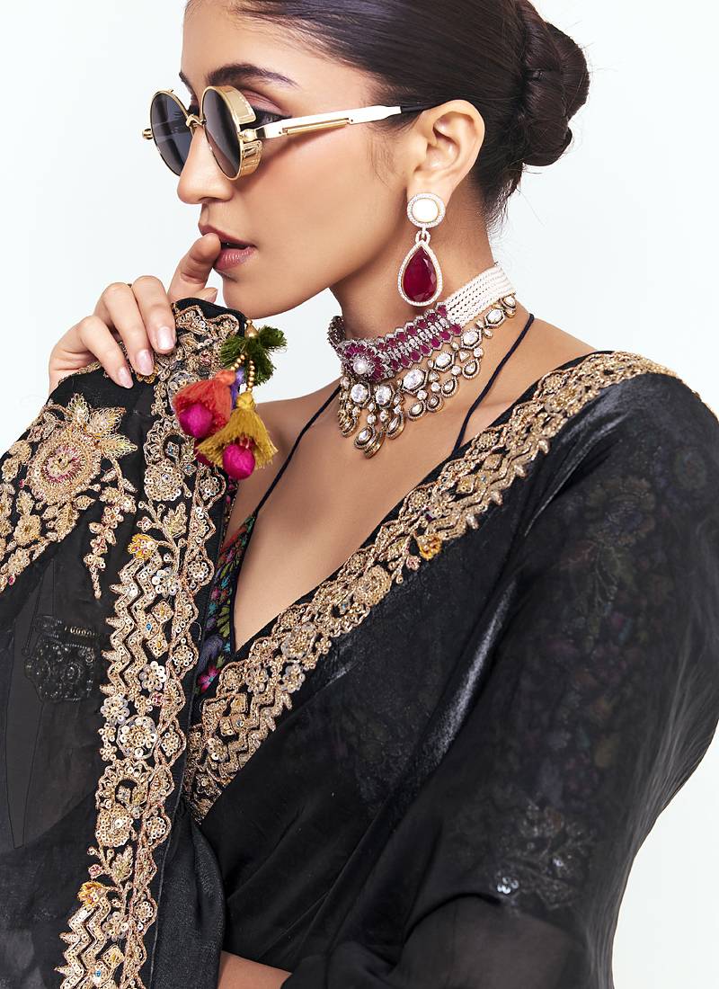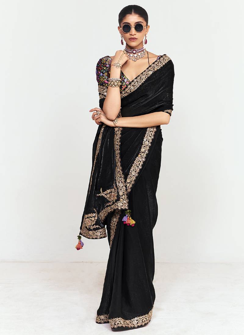 | Product Name | Black Fancy Beautified With Sequins ,Dhaga ,Thread Embroidered Work Saree | |