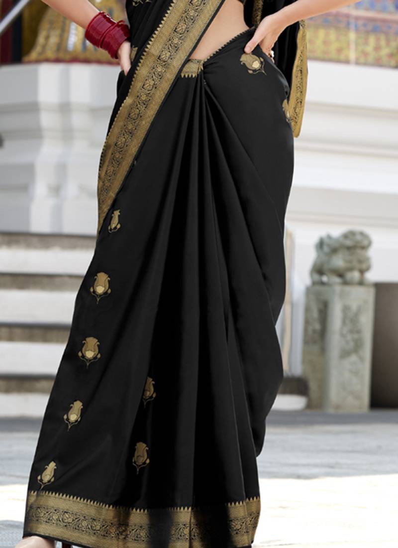 | Product Name | Black Satin Silk Blend With Beautiful Zari Weaving Border & Designer Pallu | |